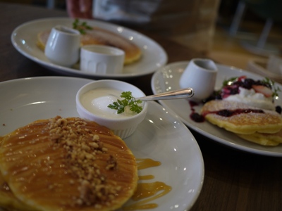 喋りに喋りまくり3時あたりに主役のパンケーキ注文。