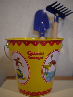 おさるのジョージのバケツとグルックケーファー社のミニシャベルとミニ熊手