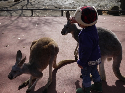 ジャングルバスを楽しく終了してカンガルー・ふれあいの森へ。