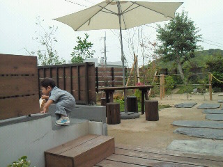 ちょっと寒かったですが外でランチ。