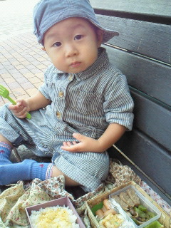マイカルに行くとお昼にマクドを食べていたのですが嫌がってきたのでお弁当持参で外でランチ。