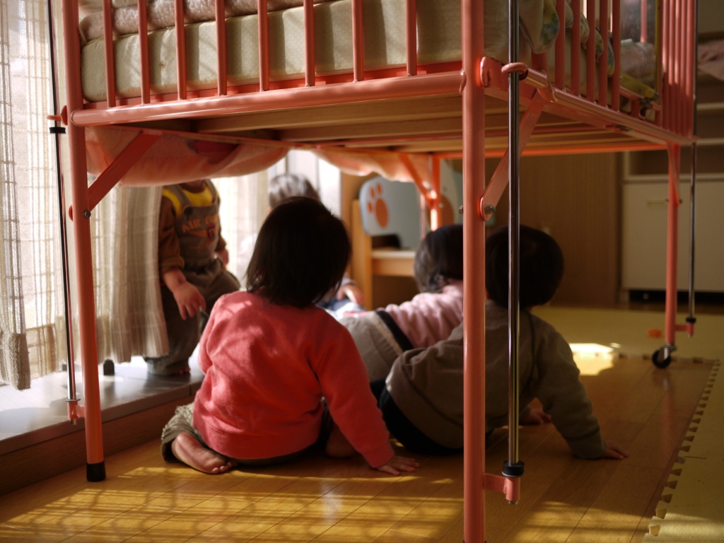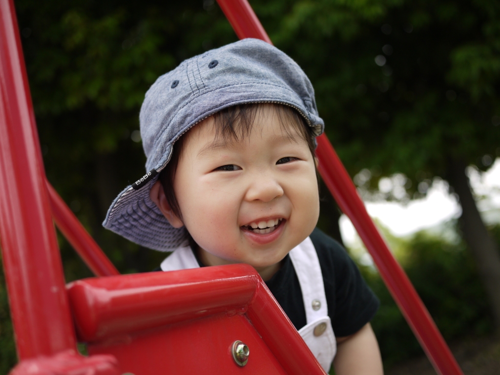 すべり台でお兄ちゃん達が鬼ごっこをしていました。