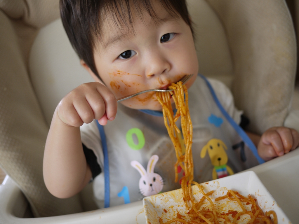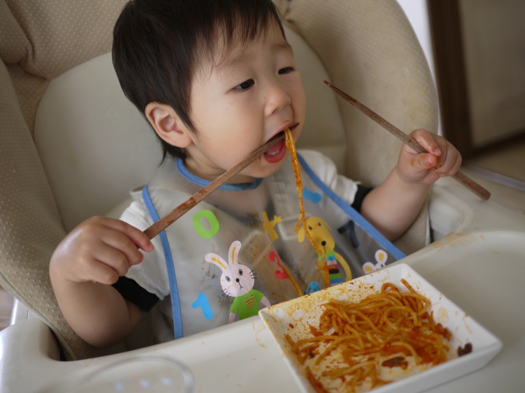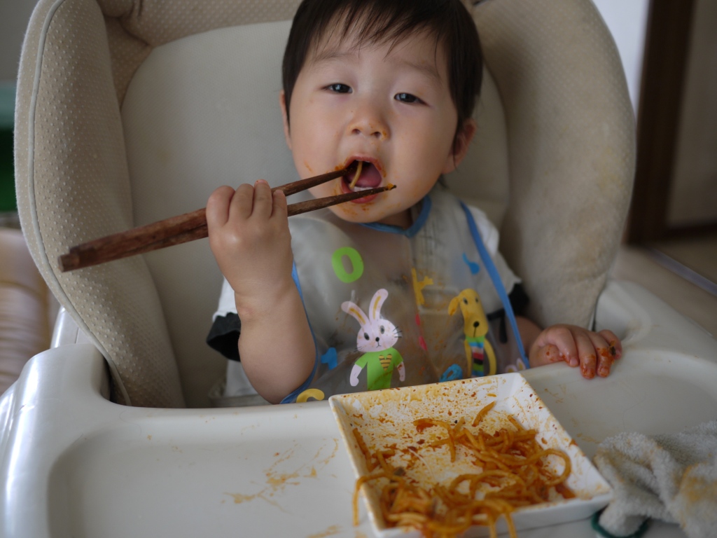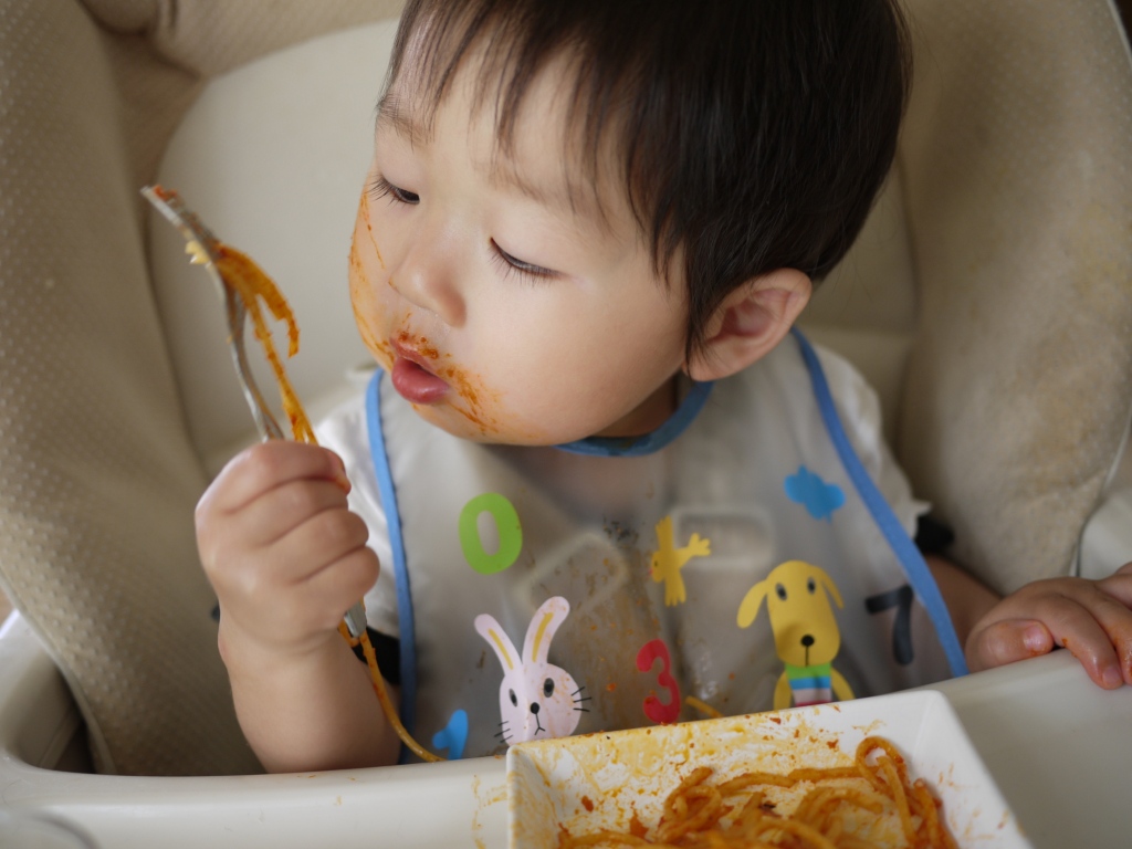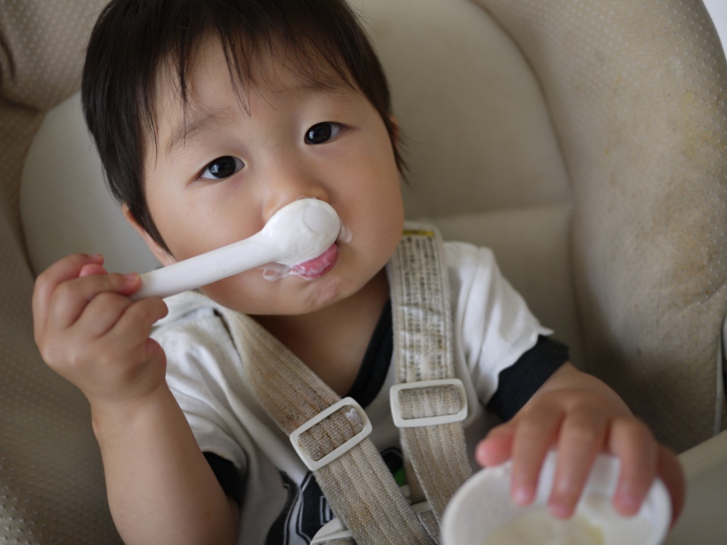 スプーンも上手に使えるようになってきたのだけど口が小さくて口周りがベトベトです。