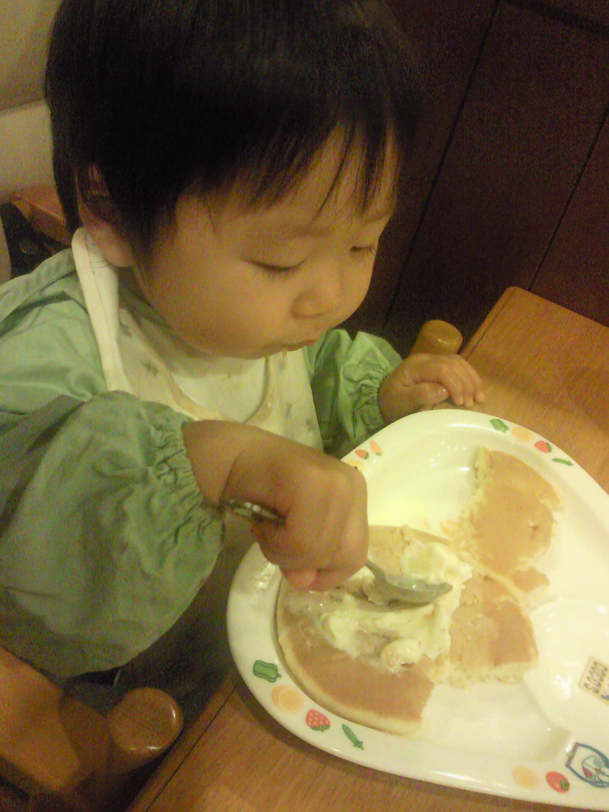 お子様ランチをあんまり食べなかったのでパンケーキを追加したけれど結局 上のアイスだけしか食べませんでした。