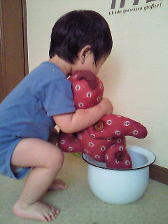 ばばちゃんがベアーのトイレトレーニング中