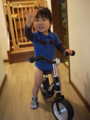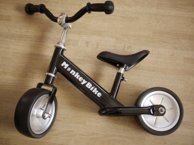 おさるのイラストが可愛いバランスバイクをプレゼントしてもらいました。
